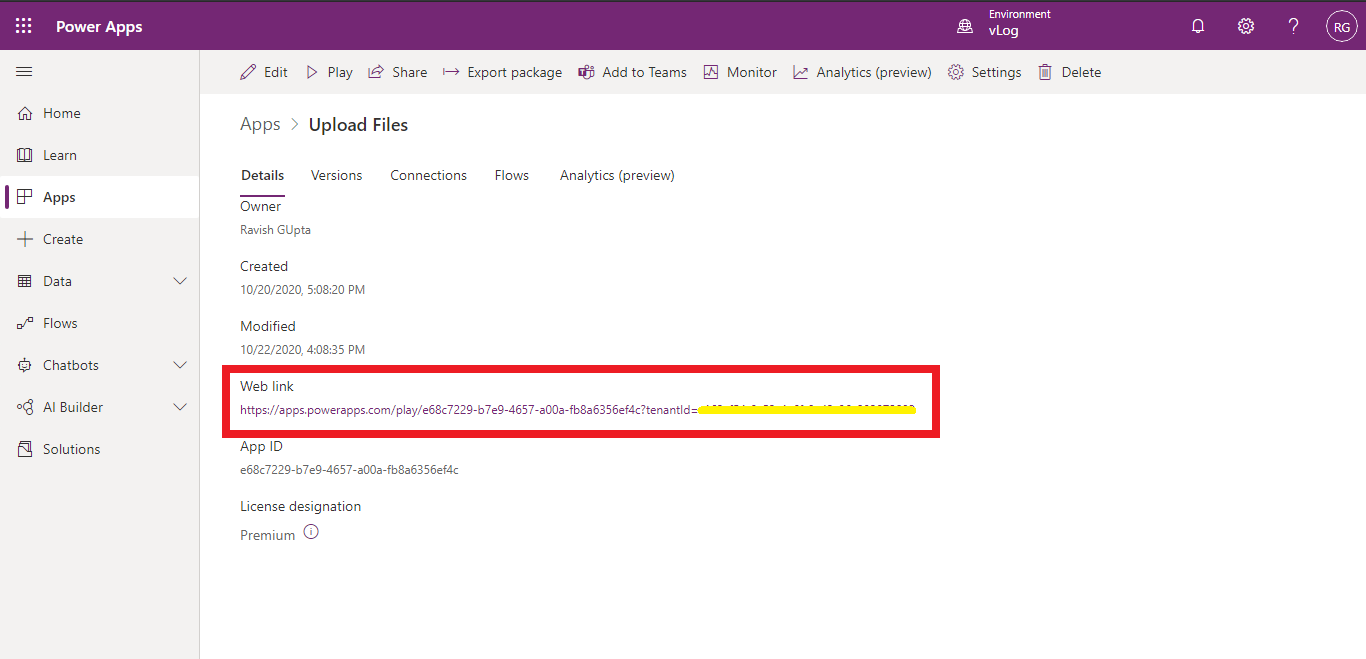 Now navigate to https://make.powerapps.com and click on apps. Select your app and click on three dots(...) and select details. Copy web link url and keep it somewhere.