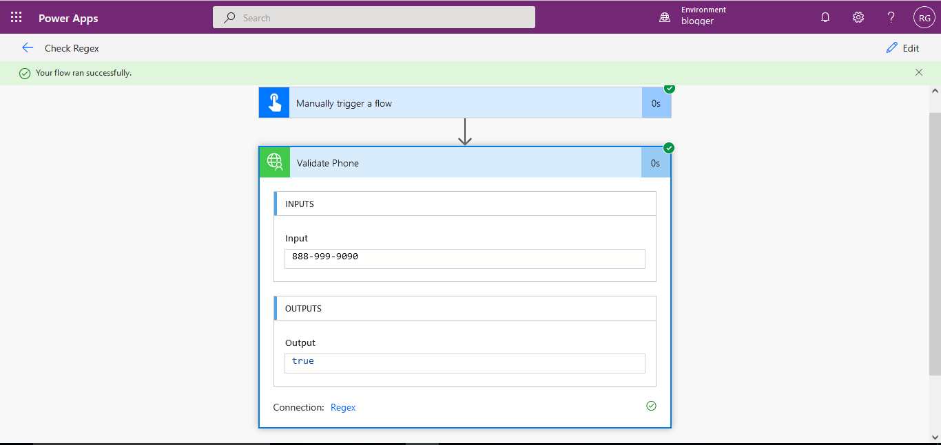 As you can see we are able to use the custom connector. Specify the Input and check whether its validating or not.